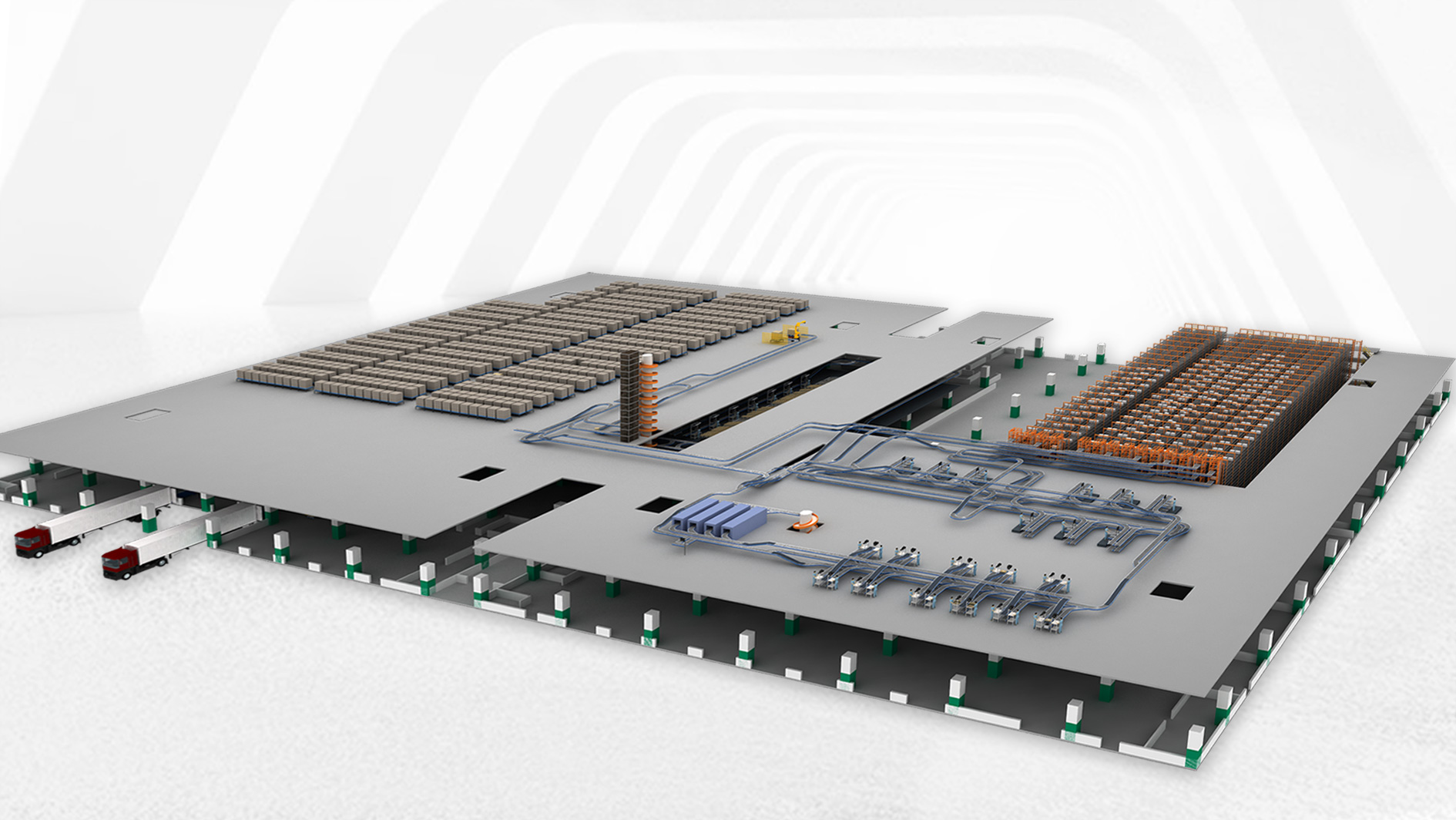 整体项目分两期建设,一期面积6.7万平米,知足2025年日均处置惩罚刚性需求;二期工程为未来生长提供扩展空间。一期项目共四层,跨层提升机、螺旋提升机将所有楼层都毗连起来,更是为3楼、4楼后期的全自动化刷新预留了接入口。