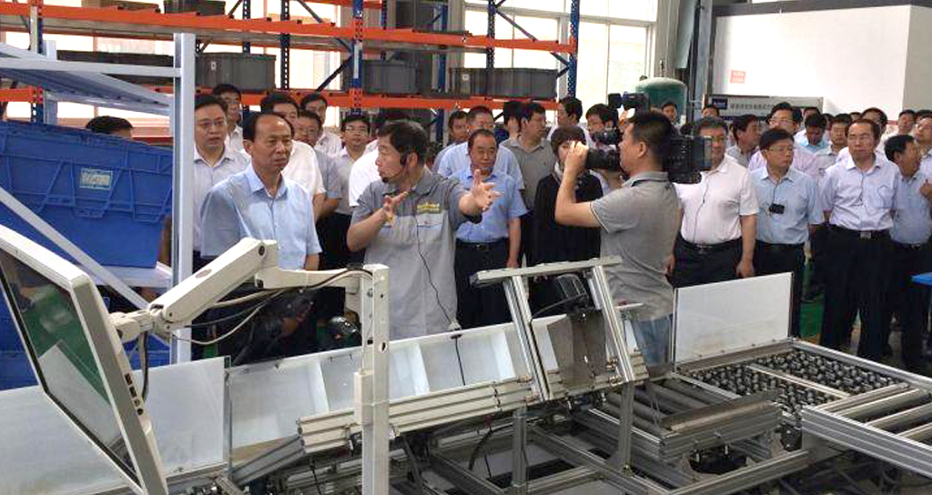 山东省德州市委书记陈勇观摩意昂体育智能工厂,意昂体育董事长吴耀华陪同解说